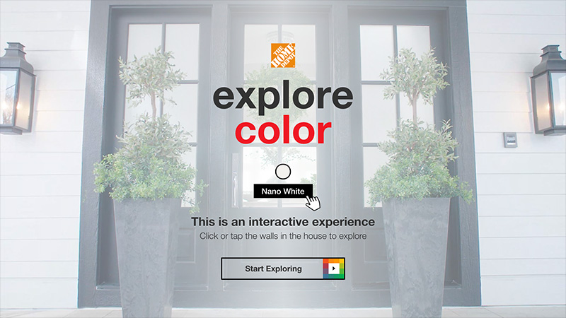 This was quite a treat to work on, again as both Creative Tech Director and Lead Dev. Home Depot wanted a flashy new way to get people more interested in their paint lines and wanted a way to bring site engagement up. It was a challenge at first to come up with something to make a seemingly mundane department more entertaining, but utilizing the idea of a shoppable video, with many more bells and whistles, seemed like the best approach. The video itself was filmed for this experience with longevity in mind: eventually if the project did well enough, there was talk about making everything in the video clickable, so everything you see (not just the paint on the walls) are items that can be found at Home Depot. The codebase needed to be able to handle this request in the future, as well as the initial ask. THD has seen such amazing numbers from this piece, they optioned to have it updated every quarter!